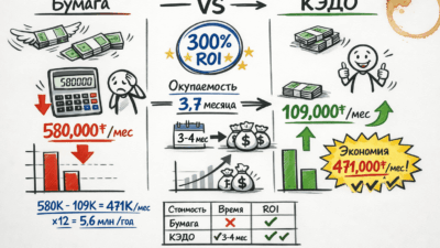 10 Минут на чтение опубликовано04.12.2025 КЭДО vs бумажный документооборот: реальные цифры В марте 2025 года финансовый директор производственной компании на 400 сотрудников попросил HR-директора обосновать внедрение КЭДО цифрами.… Читать далее